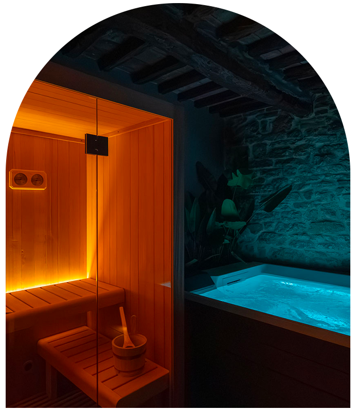 La Suite Leone è la nostra Deluxe room direttamente collegata alla piscina interna, usufruibile H24.